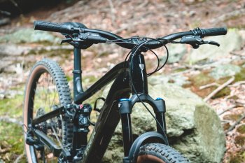 Klasycznie dla agresywnych rowerów MTB Treka mamy tu czterozawias z ABP, czyli technologią, która zapewnia brak wpływu hamowania na zawieszenie, które mimo agresywnych dohamowania nie ma tendencji do usztywniania się i tym samym cały czas zachowuje dobrą trakcję. Amortyzację dostarczają dobre – choć w dziedzinie rowerów zaawansowanych wciąż podstawowe – modele Fox’a. Z przodu znajdziemy amortyzator Rhythm 36, a z tyłu Performance Float X. Aluminiowe koła Bontrager Line 30 są oczywiście tubeless ready i znajdziemy na nich ogumienie Bontrager Brevard Pro XR o szerokości 2,5 cala z dość uniwersalnym bieżnikiem, który radzi sobie w większości warunków. Poza tym na liście wyposażenie jest mechaniczny napęd SRAM Eagle 70 z kasetą 10-52 i mocowaniem tylnej przerzutki z pominięciem haka. Ze stajni SRAMa są też hamulce – konkretnie najwyższy model z podstawowej linii DB, czyli DB8. Ciekawym uzupełnieniem są komponenty kokpitu Race Face Turbine, natomiast dropper to model ze stajni Treka – Bontrager Line z przyjemnym skokiem 200 mm w testowanej XL-ce.