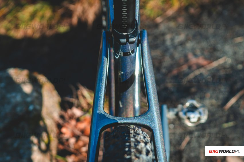 Trochę szkoda, że zdecydowano się na wykorzystanie suportu press-fit, z drugiej jednak strony według producenta takie rozwiązanie zapewnia większą sztywność (zastosowano mufę suportu Powercore o szerokości 92mm oraz asymetryczne widełki), a zważywszy na bardzo wysoką jakość wykonania całości (ta gumowa osłona wewnątrz górnej rury!) i wspomniane doświadczenie z carbonem można oczekiwać, że ten element nie będzie przysparzał problemów.