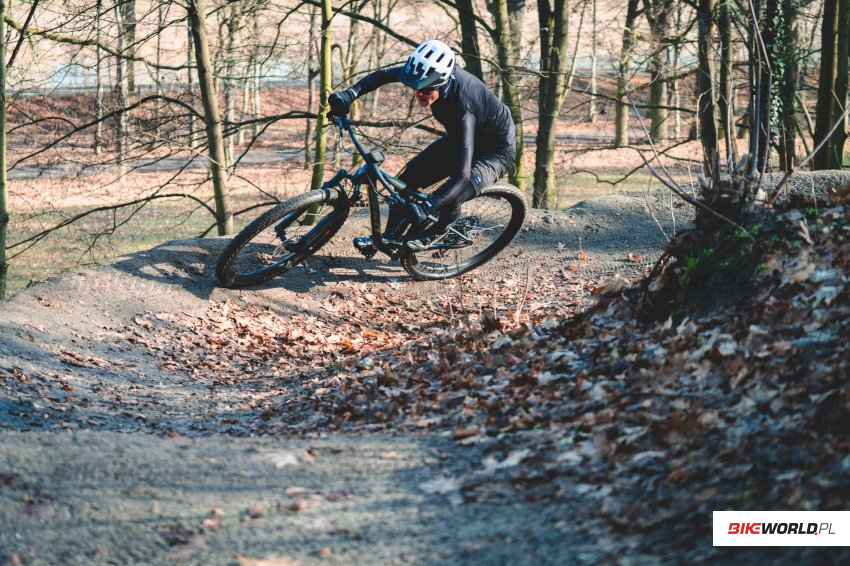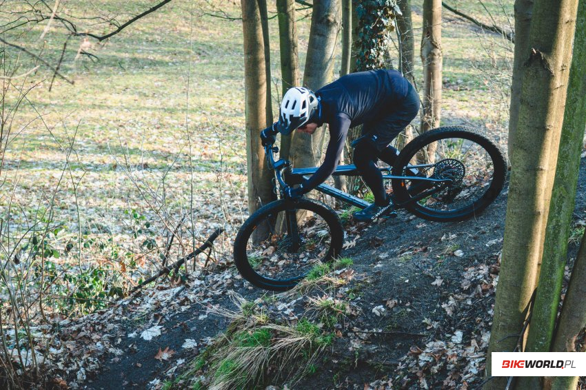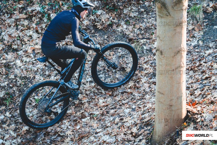 Warto mieć na uwadze, że zastosowane opony świetnie sprawdzają się w suchych warunkach niezależnie od nawierzchni, jednak gdy jest mokro zdecydowanie brakuje im klocka w środkowej części bieżnika, przez co bardziej strome podjazdy stają się wyzwaniem. Zwracamy również uwagę na pracę droppera, który mógłby pracować trochę lżej i szybciej (porównując do analogicznie zbudowanego FOXa Transfer SL).