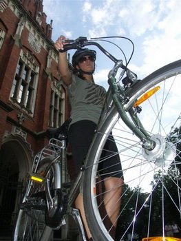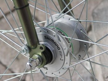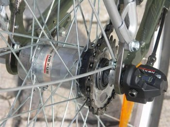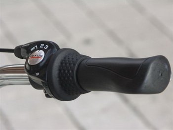 Biegi przełącza się obrotową manetka znajdującą się po prawej stronie kierownicy. Zaletą wielobiegowej piasty jest możliwość dokonywania tego nawet podczas postojów - nie trzeba kręcić korbami. Biegi wchodzą niezbyt płynnie i tuż po zmianie jest wrażenie jakby kręciło się na jałowym przełożeniu (przez chwile nie ma oporu). Prawdopodobnie jednak niewielu użytkowników będzie na to zwracać uwagę.
