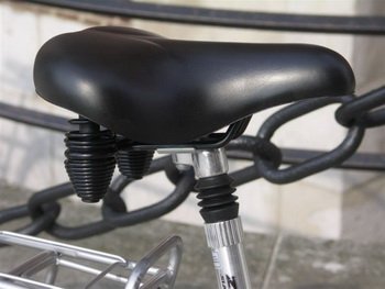 Wielkie i superwygodne siodło zostało dodatkowo wyposażone w sprężyny. Poza tym przymocowane jest do amortyzowanego wspornika firmy Zoom. Całość zestawu daje chyba z 10 cm skoku, a jadąc można się bujać jak na łóżku wodnym. Rozumiem, że producent chciał zadbać o wygodę użytkowników, ale do tak miękkiego siodełka spokojnie można by założyć sztywna sztyce. Byłoby taniej i lżej.
