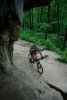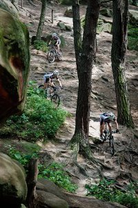 Wspomnieć też należy, że im szybciej będziemy jechać Sabotegem, tym będzie się prowadził lepiej. Uwielbia szybkie trasy, gdzie skręca się całym ciałem, a gwałtowne zwroty wymuszane są silną ręką. Lepiej czuje się wtedy, gdy nie musi zawracać w miejscu, odwdzięczając się przy okazji brakiem nerwowości. W przeciwieństwie do wielu maszyn wyczynowych nie zrzuci początkującego jeźdźca, co wypada odczytać wyłącznie jako zaletę. Sam napęd, jak i hamulce, nie wymagają komentarza, po prostu działają. Jeśli trafi nam się dobry egzemplarz, zastrzeżeń nie będziemy mieć też do widelca, ale ten model Manitou potrafi zaszwankować w mało przewidywalnym momencie. Dopóki działa, robi to świetnie, subiektywnie uginając się o więcej niż 100 mm. Nurkowanie można opanować regulując tłumienie i używając blokady na podjazdach. Uwaga jednak na zjazdach! Zablokowany widelec lubi się zepsuć po wjeździe na przeszkody, wymownym sygnałem będzie dziwny dźwięk przy odbiciu, dobiegający z jego środka.