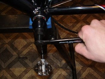 Wykręcamy suport. W systemie angielskim prawa strona gwint lewostronny odkręcamy w przeciwną stronę, lewa strona odkręcamy przeciwnie do ruchów wskazówki zegara, gwint prawostronny. W systemie włoskim lewa i prawa miska gwint prawostronny czyli odkręcamy przeciwnie do ruchów wskazówki zegara.