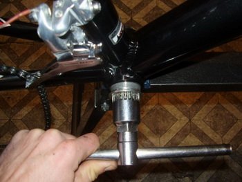 Odkręcamy śruby mocujące korby kluczem imbusowym lub nasadowym w zależności, z jakim modelem korby i suportu mamy do czynienia.