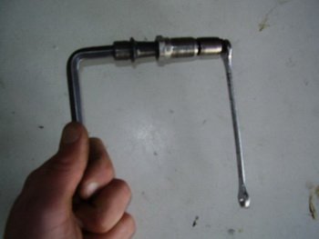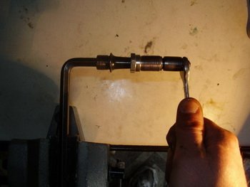 Mamy już zdemontowaną oś. Osadzamy ją na imbusie i odkręcamy dwie nakrętki. Pierwsza z nich 7 mm druga 10mm, która jednocześnie jest stożkiem.