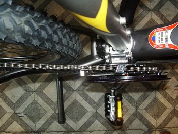 Przekręcamy pedałami, jeżeli łańcuch nie ociera i ma wystarczająco miejsca, możemy przykręcić linkę.