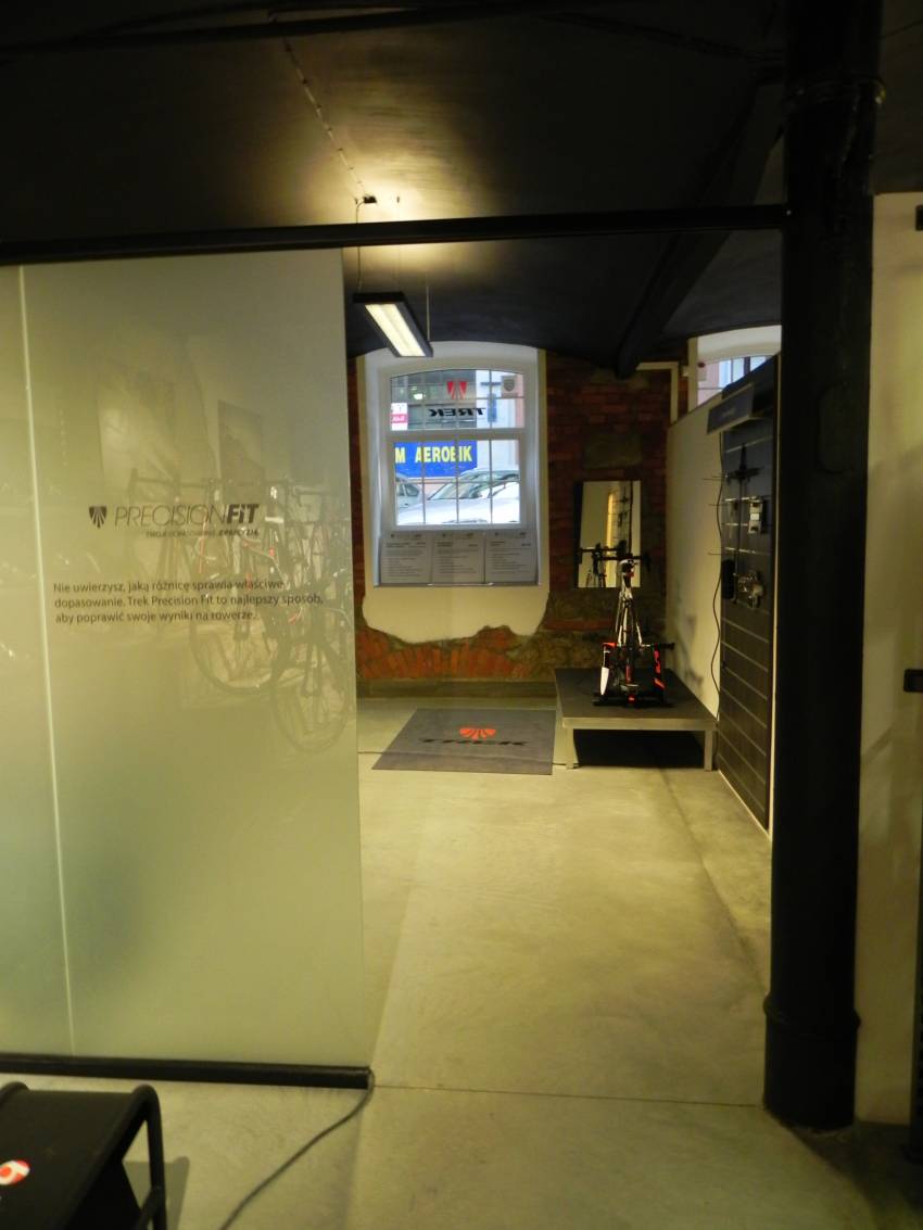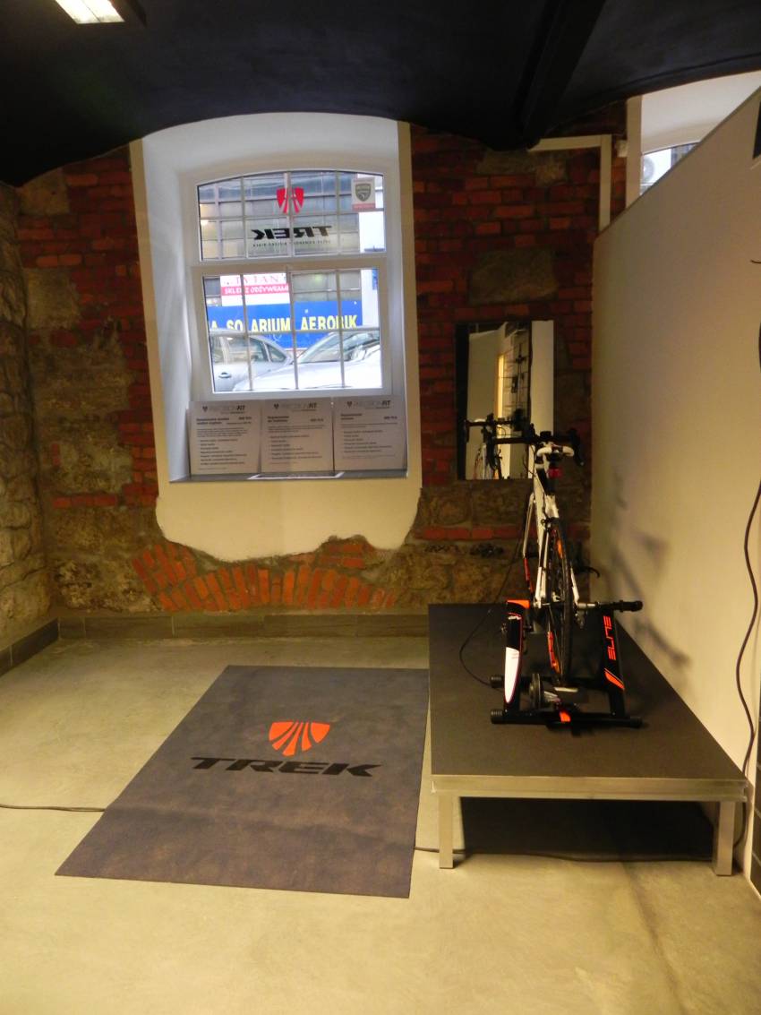 Specjalna przestrzeń na potrzeby bike fittingu w takim miejscu jak to jest koniecznością. Salon w Bielsku oferuje nam specjalny program bike fittingowy Trek Precision Fit. Specjaliści Treka dopasują nasz rower dla naszych potrzeb oraz ustawią odpowiednią pozycję. W ofercie fittingowej znajdziemy dopasowanie dla szosowców, triathlonistów oraz dynamiczną analizę motion capture. Czego możemy spodziewać się po tych usługach? Prawidłowo ustawione zostaną bloki, wysokość siodła oraz jego położenie przód/tył, położenie mostka oraz jego długość. Odpowiednio dopasowane zostaną buty oraz pozycja podczas jazdy. W zależności od wybranego programu, będziemy mieli możliwość skorzystania z różnych możliwości.