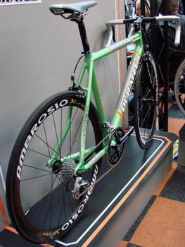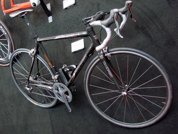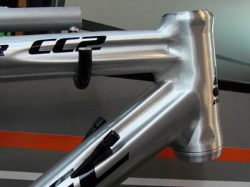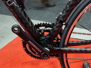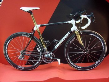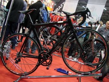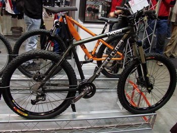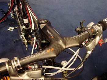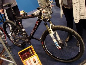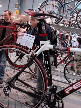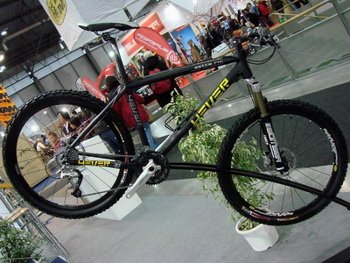 Co do tej marki trudno określić jej pochodzenie, bowiem strona czeska... nie istnieje, sprzęt zaś funkcjonuje jako rama + komponenty. Chyba warto jednak nim się zainteresować, bowiem prezentowana rama przy wadze 1,52 kg kosztowało tylko trochę ponad 2000 zł. Na tym samym stoisku można było zobaczyć pełną ofertę karbonowych części Trigon. Przypuszczam, że mamy tu do czynienia z dalekowschodnią produkcją.