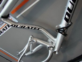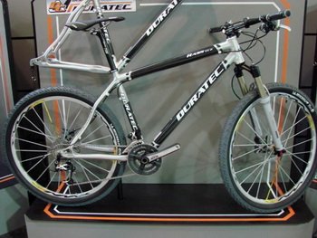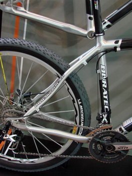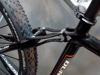 Najciekawsze stoisko na całych targach miła zdecydowanie firma Duratec, gdzie w pełnej okazałości podziwiać można było czeską myśl techniczną. O ile ramy aluminiowo-karbonowe jednak trochę przypominały Titusy, to już systemy zawieszenia był zdecydowanie jedyne w swoim rodzaju. Tłumik umieszczony w centrum ramy, ale przesunięty w prawo względem osi wzdłużnej? Proszę bardzo! A co powiecie na zastąpienie fragmentu tylnego widelca przez karbonowe płytki w modelu Canner CC1? Konstrukcja CEE (Carbon Elastic Element) ma eliminować drgania. Durateki mogą się pochwalić również wewnętrznym prowadzeniem linek do przerzutek i specjalnym środkiem suportu z wymiennymi gwintowanymi miskami. Rowery Durateca mogą być wyprodukowane w dowolnym rozmiarze - obok standardowych wielkości firma oferuje opcję indywidualizacji.