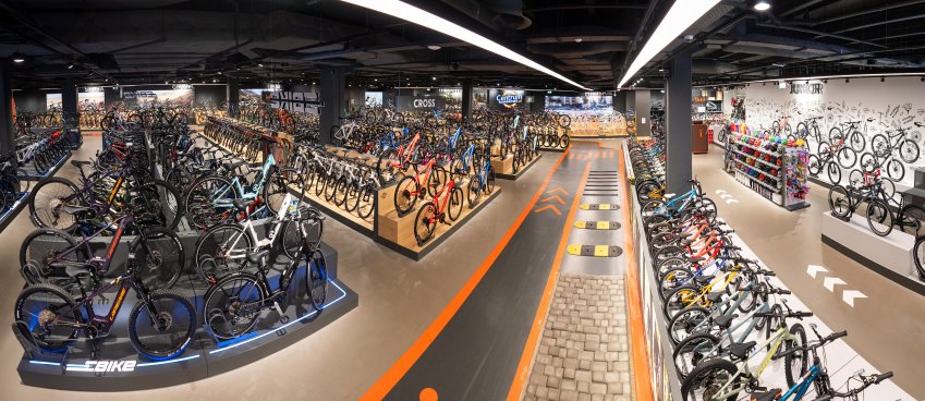 Liczby oraz szeroki asortyment mogą przyprawić o mały zawrót głowy, dlatego projektanci nowego salonu całą jego przestrzeń podzielili na strefy tematyczne. Na terenie sklepu znajdziemy także przygotowaną specjalnie ścieżkę rowerową z przeszkodami, gdzie będziemy mogli przymierzyć się do danego roweru oraz sprawdzić, jak się na nim czujemy.