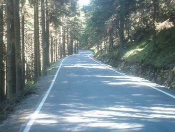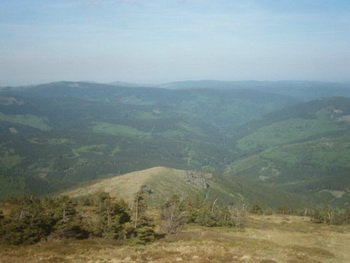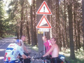 Podjazd na Pradziada rozpoczynamy na wysokości ok. 850 metrów nad poziomem morza. Sam Pradziad ma wysokość 1492 m.n.p.m. Mamy więc do pokonania na odcinku 9 km przewyższenie 642 metrów. Nachylenie drogi wynosi tutaj ok. 10 –12 %. Podjazd jest bardzo męczący. Należy liczyć się z tym, iż zdobędziemy szczyt dopiero po godzinie pedałowania. Należy również pamiętać, że na górze będzie o około 5 stopni chłodniej niż na dole. Gdy mamy już duże problemy z podjeżdżaniem, możemy się starać jechać od prawej do lewej i od lewej do prawej krawędzi jezdni. Co prawda wydłuża to drogę, lecz niweluje nachylenie. Trasa prowadzi przez las, więc zapierających dech w piersi widoków nie należy się spodziewać. Dopiero na samej górze możemy nacieszyć oczy wspaniałymi widokami, roztaczającymi się we wszystkie strony. Na samym szczycie znajduję się wieża widokowa i bar, w którym możemy się posilić. Znajdujemy się teraz prawie 1,5 kilometra nad poziomem morza. Pradziad to najwyżej płożone miejsce w europie środkowo – wschodniej, gdzie można dotrzeć asfaltową drogą. Po wypoczynku na górze czas na zjazd. Zjazd jest bardzo bezpieczny, a zatem i szybki. Nawierzchnia jest w idealnym stanie. Po drodze porusza się niewiele samochodów, nie wiele jest również zakrętów na zjeździe. Jest to więc idealne miejsce do poprawienia swoich rekordów prędkości. Należy jednak pamiętać o kilku kwestiach. Powinniśmy trzymać się z dala od krawędzi jezdni, być maksymalnie skupieni na drodze. Zwalniać jeszcze przed zakrętami. Chcąc rozpędzić się do jak największej prędkości, należy ułożyć sylwetkę tak, aby była ona jak najmniejszą przeszkodą dla wiatru. Musimy zwyczajnie jak najmocniej pochylić się w dół, patrzmy jednak ciągle przed siebie! Obowiązkowo przy tak dużych prędkościach musimy zjeżdżać w kasku. Upadek na asfalt przy prędkości 50 – 60km/h, może mieć bowiem bardzo tragiczne skutki. Wracamy na parking, skręcamy w lewo. Kierujemy się na Karlovą Studanke i Vrbno pod Pradedem. Po 2 kilometrach i 2 krótkich, ale ciężkich podjazdach docieramy do karlovej. Karlova Studanka to miejscowość uzdrowiskowa, w której zachowała się typowa uzdrowiskowa architektura. W niewielkiej pijalni możemy skosztować tutejszej wody mineralnej. Warto również obejrzeć znajdujący się tuż przy drodze wodospad. Przez miejscowość prowadzi trochę uciążliwa droga wyłożona kostką. Na niektórych odcinkach lepiej jechać chodnikiem. Do Vrbna jedziemy cały czas wzdłuż rzeki, malowniczą, górską doliną. Z Vrbna kierujemy się już na Głuchołazy trasą nr. 445. Droga, aż do samej granicy nie jest łatwa. Mamy do pokonania kilka podjazdów. Jednak wynagrodzeniem za trudy są malownicze widoki jakie roztaczają się z drogi.