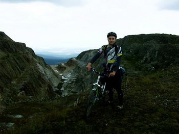 Pogoda na wyprawie tego rodzaju ma decydujące znaczenie. Wszystkie bagaże mieliśmy ze sobą, umieszczone w sakwach na rowerach i nie można było dopuścić, żeby zamokły. Spaliśmy głównie w namiotach, nie w kwaterach, nie było więc możliwości wysuszenia się, ogrzania. Również jazda w mokrym stroju kolarskim jest mało komfortowa i może skończyć się wychłodzeniem organizmu, szczególnie, jeżeli temperatura powietrza jest niska, jest chłodno, wietrznie i pochmurno. Jazda w nieprzepuszczalnej pelerynie może spowodować „zagotowanie” rowerzysty, a i tak buty i spodnie byłyby mokre. Dlatego czekaliśmy na poprawę pogody. We wtorek było już zdecydowanie lepiej, spakowaliśmy bagaże i opuściliśmy gościnne schronisko w Kamieniu. Kierunek – do góry! Chcieliśmy spróbować podążać Głównym Szlakiem Sudeckim imienia M. Orłowicza. Swój początek (lub koniec, zależy jak na to spojrzeć) ma on w Świeradowie Zdroju. Wyjechaliśmy do góry asfaltową drogą, którą pamiętałem z finiszu Bike Challenge. Znaleźliśmy się na Rozdrożu Izerskim. Po małych problemach nawigacyjnych na szczycie kontynuowaliśmy jazdę czerwonym szlakiem. Jechało się bardzo ciężko, błoto, korzenie, podmokłe łąki. Przemieszczaliśmy się bardzo powoli. W końcu dotarliśmy do drogi szutrowej, wyglądało na to, że ten trudny odcinek można było ominąć. Dalej droga była już dobra, ale co do czerwonego szlaku zaczęliśmy nabierać poważnych podejrzeń. Wybieraliśmy szutrówki, które zaprowadziły nas do kopalni Stanisław. Kopalnia ta jest najwyżej położoną w Europie czynną kopalnią. Widok jest jak z księżyca. Na Bike Challenge widziałem ją z drugiej strony, z dołu, podczas pokonywania kilkunastokilometrowego szutrowego podjazdu. Z góry, od czeskiej strony wyglądało to niesamowicie.