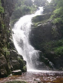 Karpacz - miasto, kojarzone ze Śnieżką (najwyższy szczyt Karkonoszy), Świątynią Wang (kościół ewangelicko-augsburski z przełomu XII i XIII wieku, sprowadzony do Polski z Norwegii, słynący ze szczęśliwych małżeństw), no i oczywiście górskimi etapami Tour de Pologne. Karpacz to również półmetek naszej wycieczki. Koniecznie należy podjechać nieco do góry Karpacza i odwiedzić Świątynię Wang (33km), ewentualnie zjeść w pobliżu obiad, a następnie wrócić tą samą drogą do rogatek Karpacza, pokonując linię premii górskiej TdP. Z miasta wyjeżdżamy żółtym szlakiem turystycznym (obecny już przy kościele Wang), pokonujemy Babią Ścieżkę ze szczytem Czoło (874 m n.p.m.) i dojeżdżamy do Przełączki (35.7km), gdzie skręcamy w lewo i mijając DW Lubuszanin wjeżdżamy na niebieski szlak. Mniej zacięci kolarze mogą wybrać łatwiejszy wariant z pominięciem Babiej Ścieżki – należy nie zjeżdżać z żółtym szlakiem w las, ale kontynuować drogę aż do spotkania z czerwonym szlakiem, którym również dojedziemy do Przełączki. Niebieski szlak doprowadza nas do Drogi Sudeckiej (38.8km), z której zjeżdżamy szlakiem żółtym w kierunku Przesieki. Żółty szlak to jedna z ciekawszych tras na rower w tej części Karkonoszy i w żadnym wypadku nie wolno omijać tej części naszej wycieczki! Tuż przed Przesieką po prawej stronie mijamy wodospad Podgórnej (41.5km), do którego warto zjechać (100m od szlaku). Mijamy Przesiekę, a żółty szlak doprowadza nas do Drogi pod Reglami (43.5km), którą wracamy do Szklarskiej Poręby (53km). SKLEPY I RESTAURACJE NA TRASIE: Szklarska Poręba, Karpacz, Przesieka MIEJSCA, W KTÓRYCH MOŻNA ODPOCZĄĆ, PUNKTY WIDOKOWE: miejsce do odpoczynku (stoliki) na Drodze pod Reglami (17.6km, 46.5km), Dwa Mosty (23km), skałki na Drodze Chomontowej (!) (30.8km), Karpacz (33km), Wodospad Podgórnej (41.5km) DZIEŃ 2. Góry Izerskie – Stóg Izerski, Kopalnia Stanisław, Zakręt Śmierci, Wodospad Szklarki