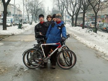 Chciałoby się powiedzieć "przygoda, ach przygoda... każdej chwili szkoda". A szkoda, szkoda. I Jeszcze "i want to ride my bicykle(...)" Po tylu dniach na rowerze człowiek inaczej patrzy na wszystko. Trudno się poruszać choćby chodząc... I tak doznać nam przyszło dobroci bycia i życia w drodze... Rower unosił nas hen, hen a ludzie - tu już trudno znaleźć odpowiednie słowa na opisanie nieograniczonej przegościnności polskiej. Być tak daleko, a czuć się jak w domu-to jest coś. Zima inne oblicze raczyła nam ukazać-znacznie przyjaźniejsze. Na stalowym rumaku zimno nie jest nigdy, gdy ciało w ruch wprawione. Widoki... ach. Ot tak po prostu zachwycić się można. Człowiek najciekawszych doznań doświadcza jadąc po zmroku, gdy w siebie się zagłębia, a ciało już tak zwyczajne do roweru, iż podświadomie panuje nad wszystkim. Po takich doświadczeniach można być tylko lepszym - przecież po doznaniu tyluż dobroci spłacać dług już czas. Wędrówka już celem jest samym w sobie - czego doznać sobie i innym życzę... Życzymy uczestnikom szerokiej drogi i szczęśliwego ukończenia tej bardzo trudnej wyprawy! Foto: