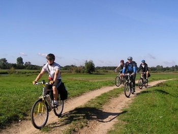 Pierwszy raz usłyszałem o Nadwarciańskim Szlaku Rowerowym od brata, który mieszka w Poznaniu. Nie uświadczymy tu co prawda najmniejszej górki, ale są inne atrakcje. W Wielkopolsce jest to jeden z bardziej znanych szlaków rowerowych, można kupić przewodniki, mapki itp. W Łódzkiej strefie stron internetowych poświęconych trasom rowerowym nie ma nawet wzmianki. Szkoda. Położenie tego szlaku przesądziło o decyzji, z Poznania blisko, z Łodzi blisko jedziemy na weekend. Nie spodziewałem się nic nadzwyczajnego po tym szlaku, a jak bardzo się myliłem przeczytacie poniżej. Dojeżdżamy pociągiem do Konina, tutaj powitanie, ostatnie poprawki przy rowerach, kontrolne spojrzenie na mapę i ruszamy. Tworzymy grupkę pięciu rowerzystów, humory dopisują, pogoda wspaniała, a że jest z nami kolega z Konina odpada problem nawigacji w obcym mieście.