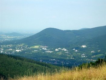 Naszą wyprawę rozpoczęliśmy w Ustroniu Poniwcu pod hotelem „Bielenda”, za którego plecami znajduje się wyciąg orczykowy i stok narciarski. Do górnej stacji wyciągu prowadzi droga z wysypanym kamieniem o frakcji skutecznie uniemożliwiającej podjazd w związku z czym musieliśmy wyprowadzać rowery. Na szczęście, podejście to jest ocienione, co jest dużym plusem podczas pogody takiej, jaka wówczas mieliśmy (temp. 330 C). Po pokonaniu tej różnicy wysokość okazuje się, że jesteśmy już na tyle wysoko (górna stacja wyciągu),że możemy podziwiać panoramę Ustronia. Dalej, już pedałując kierujemy się czarnym szlakiem w kierunku Wielkiej Czantorii, rozkoszując się cudownymi krajobrazami, jakimi raczy nas Beskid Śląski zarówno po stronie polskiej jak i Czeskiej, ponieważ szlak ten biegnie wzdłuż granicy. Nie daleko pod szczytem Czantorii znajduje się nie duży barek „Rancho”, w którym postanowiliśmy zrobić popas. Niestety natrafiliśmy na spora grupę młodzieży kolonijnej, która skutecznie okupowała to miejsce. W związku z tym, że na jakikolwiek posiłek musielibyśmy czekać ok.. godziny (!!!) postanowiliśmy ruszyć dalej. Po chwili dotarliśmy na szczyt 995m. n.p.m. Nie zabawiliśmy tu zbyt długo, ponieważ dowiedzieliśmy się, że na Przełęczy Beskidek oddalonej raptem 3 km od nas znajduje się stacja turystyczna „Światowid” gdzie można bardzo smacznie zjeść. Skuszeni ta informacją pomknęliśmy czerwonym i niebieskim szlakiem (idą razem), przekonać się czy informacja ta się potwierdzi:).