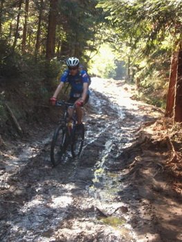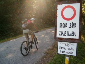 Następnego dnia wstaliśmy skoro świt (no dobra, trochę przesadzam ;)) i uciekliśmy czym prędzej z tej „lodówki” trzymając się czerwonego szlaku prowadzącego do Hali Miziowej, zaliczając po drodze Trzy Kopce, Palenice i Munczolik. Stamtąd zjechaliśmy do Korbielowa a następnie przez Przyborów i Koszarawe do schroniska Zygmuntówka na przełęczy Klekociny. Stamtąd zjechaliśmy do Zawoi i zatrzymaliśmy się na nocleg w bardzo przyjemnym gospodarstwie agroturystycznym :). Przy okazji musieliśmy zmienić klocki hamulcowe zabite w jeden dzień przez błoto!