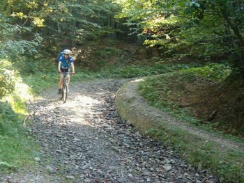 W chatce było tak fajnie, że czwartego dnia wygramoliliśmy się dopiero przed południem i ruszyliśmy od razu w stronę Baraniej Góry. Po zdobyciu szczytu zjechaliśmy czarnym szlakiem (notabene znowu bardzo fajny zjazd) do Kamesznicy a dalej do Milówki. W Milówce obowiązkowy obiadek pod jednym ze sklepów i decyzja o jeździe w kierunku Hali Boraczej. Na miejscu stwierdziliśmy jednak, że powinniśmy zdążyć na Hale Lipowską i ruszyliśmy przed siebie. Szlak zielony z Boraczej na Lipowską pomimo pokonania ponad 300 metrów wysokości, w większości przejezdny (czasami strach jechać wzdłuż góry przy szerokości ścieżki około 1 metr i przepaści wzdłuż niej na kilkadziesiąt) i tylko w końcowym odcinku przymusowe prowadzenie. Gdy wreszcie dotarliśmy na hale Lipowską było już prawie ciemno, więc z chęcią wprowadziliśmy rowery i weszliśmy do środka. Niewątpliwie był to najgorszy nocleg ze wszystkich, schronisko odremontowane, ale cała reszta – po prostu dramat. Zimna woda pod prysznicem, zimno w pokojach, światło samo-gaszące się, gdy człowiek korzysta z prysznica, a na dodatek drogo i niezbyt przyjemnie. Co jak co ale na wysokości 1300 metrów w okresie jesiennym czasem jest już zimno i przydałaby się przynajmniej ciepła kąpiel bądź ciepłe grzejniki. Ale nie pozostało nic – tylko ubrać się w polary, przykryć pięcioma kocami i przespać do rana. Dodam, że 10 minut drogi dalej jest schronisko na Rysiance, więc jak ktoś by się zastanawiał, w którym nocować... to ma już odpowiedź.