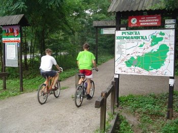 Dlaczego jednak o tym wszystkim piszę? Otóż owy kompleks leśny jest znakomitym terenem do jazdy na rowerze. Gęsta sieć ścieżek asfaltowych, szutrowych oraz duktów zapewnia świetną zabawę właściwie o każdej porze roku. Nie będę ukrywał, że stopień trudności niepołomickich szlaków jest dość niski, ale to bynajmniej nie świadczy o ich małej atrakcyjności. Wręcz przeciwnie! Pozwala on większej liczbie rowerzystów cieszyć się z jazdy we wspaniałym lesie, o walorach estetycznych i zdrowotnych nie wspominając. Przedstawiona propozycja wycieczki będzie tylko jedną z wielu opcji zwiedzenia Puszczy na rowerze. Tak naprawdę każdy może wyznaczyć sobie tam swoją ulubioną i najlepiej dostosowaną do swoich możliwości trasę, do czego serdecznie zachęcam.