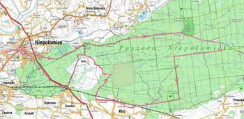 Na północnym skraju polany skręcamy w lewo w czarny szlak. Czeka nas najtrudniejszy odcinek całej wycieczki, bowiem droga jest tam dość zarośnięta i musimy pokonać chyba ze trzy pięciometrowe podjazdy. Jest też znacznie więcej błota niż w innych częściach Puszczy. Po dojechaniu do szosy nr 75 (uwaga na duży ruch!) skręcamy na siedmiokilometrową ścieżkę rowerową (oznaczona zielonym kolorem). W atmosferze totalnej sielanki, spokojnym szuterkiem wracamy do Niepołomic. O ile mamy jeszcze siłę, dobrze jest zahaczyć o Kopiec Grunwaldzki. Został on usypany w latach 1910-1915, dla upamiętnienia 500 setnej rocznicy Bitwy pod Grunwaldem. Był to piękny gest miejscowej ludności, świadczący jednocześnie o tym, że Polska zrzuca w końcu z siebie jarzmo niewoli.