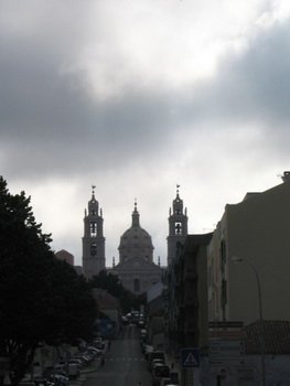 Rano zbieramy się jak zwykle po ciemku. Droga na mapie jest wzdłuż Tagu. Na mapie... po 30 km w miarę płaskich zaczynają się góry i doliny. Pierwszy odpoczynek w Gaviao, a potem gubiąc kilka razy drogę aż do Torres Novas. Tam znajdujemy.... Intermarche, a zatem znów lody 'Adelie' 1 litr. Stamtąd bocznymi nieoznakowanymi drogami do Fatimy. Wjeżdżamy w góry, po drodze zrywa się wiatr, który niemal zwala nas z nóg, a na dodatek jakiś wściekły tir o mało nas nie zmiata z powierzchni ziemi. Po wyczerpującym podjeździe jeszcze 15 km płaskiej drogi i trafiamy do Fatimy. Pojawiamy się na ogromnym placu przed bazyliką, gdzie wzbudzamy zainteresowanie kilku pielgrzymów z Polski. Dostajemy kontakt do darmowego domu pielgrzyma. Co za ulga... Po obiedzie i prysznicu wybieramy się, aby zwiedzić sanktuarium i wziąć udział w wieczornym międzynarodowym różańcu.