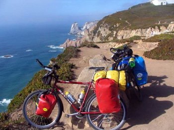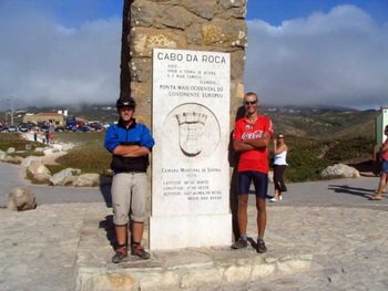 Rano wstajemy lekko zaniepokojeni czy karaluchy nie zeżarły nam sakw. Ale wszystko jest w całości. Wyruszamy modląc się, aby żaden z mieszkańców domku nie postanowił nam towarzyszyć. Jedziemy do Mafry.. jak się okazuje przez spore przełęcze... tam szukamy kościoła. Jest 8:30, po paru kilometrach przymusowego zwiedzania miasta osiadamy na placu przy Katedrze.. jest 9:15. Okazuje się, że spis mszy w Mafrze wisi wewnątrz katedry, którą otwierają o 10 :). Czekamy więc. O 10 z kartki dowiadujemy się, że jedyna msza jest właśnie tam o godzinie 11:30. Po wyjeździe z Mafry nareszcie zjeżdżamy do oceanu... (myślimy sobie) o głupcy! ... owszem zjeżdżamy, ale na sposób iberyjski... czyli przez góry. Jak się okazuje nie byle jakiej... pokonujemy kilka przełęczy, a bezpośrednio przed Cabo da Roca podjeżdżamy na 260 (niby nic, ale z poziomu morza...) W końcu zjeżdżamy na przylądek i co najważniejsze... nad oceanem jest błękitne niebo. Tam właśnie.. na końcu czasów... spędzamy przepiękne chwile wśród wiatru, zapierniczających chmur, dzikich turystów, błysków fleszy, latającego piasku i szumiącego oceanu. Siedzimy tam prawie godzinę, i praktycznie ze łzami w oczach zbieramy się do odwrotu... do ... domu. Droga do Lizbony wiodła pięknie.. wzdłuż wybrzeża. Było już późno, a my przed sobą mieliśmy sporo kilometrów bardzo zatłoczoną drogą. Kilkanaście kilometrów przed metą utworzył się korek i trwał on praktycznie do bram miasta. Korek.... to co rowerzyści lubią najbardziej...:) mijaliśmy rzesze samochodów, to z prawej , to z lewej, to środkiem, to chodnikiem. Ekstaza...:D jakimś cudem nie spowodowaliśmy żadnego wypadku i dojechaliśmy szczęśliwie do Lizbony.. a tam czekała dopiero misja: niemożliwa. Dostać się na kamping Monsanto.. Najbezpieczniejszy kamping na świecie... bo najlepiej ukryty. Jak tam dojechać wiedzą tylko taksówkarze oraz kierowcy autobusów i to też tylko ci zasłużeni. Po długich poszukiwaniach i paru rozmowach o 23 stajemy u bram twierdzy Monsanto.