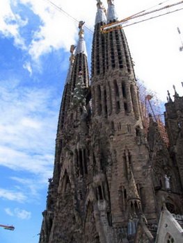 Noc jakich mało.... około 1:00 na dworzec przychodzi stado miejscowych w celach słonecznikowo-alkoholowych. Zmyliśmy się więc po angielsku w stronę miasta. Szukaliśmy z 20 minut, znaleźliśmy kawałek plaży, niestety okazała się niewystarczająco komfortowa - nawet zupełnie nie. Jedziemy dalej, naszą uwagę zwraca cofający samochód, dzięki któremu znajdujemy fajne skałki na klifie. Kładziemy się na skałach i drzemiemy. Koło 4.00 przyszedł, a właściwie przyczłapał z wrzaskiem na ustach jakiś Hiszpan o nieodgadnionej wymowie. Chyba krzyczał z rozpaczy. Siadł na skraju urwiska i darł się w morze, chyba przez łzy, czasem poklaskując. Jednak nie miał zamiaru rzucać się w morze, po 20 minutowym seansie jodowym wstał i poczłapał z powrotem. A my leżąc pod śpiworem na skale staraliśmy się drzemać, czasem się udawało. O 6:00 jedziemy na dworzec, kupujemy bilety i pakujemy się do pociągu. Zajeżdżamy do Barcelony, znajdujemy camping, recepcjonistka wita każdego przybysza powitaniem w jego ojczystym języku. Jemy obiad i wracamy zwiedzać.