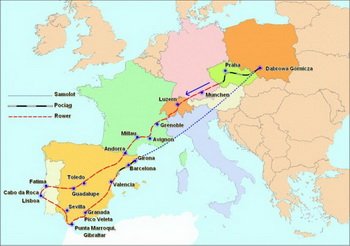 Trasa wyprawy przebiegała przez 10 państw - Polskę, Czechy, Niemcy, Austrię, Szwajcarię, Włochy, Francję, Andorę, Hiszpanię, Portugalię oraz Gibraltar - chociaż przez niektóre państwa przejeżdżaliśmy niemal symbolicznie. Ogółem w ciągu 49 dni przejechaliśmy 5529 km.Portugalia /28 lipca - 2 sierpnia/