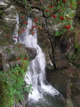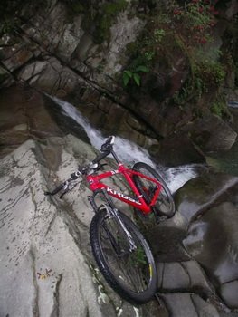 Jak się okazało, to nie koniec cudów na tej trasie. Kawałek za Parkiem, jadąc niebieskim szlakiem minęliśmy przepiękny wodospad Zaskalnik. Tak na serio to mijaliśmy go jakieś pół godziny, bo każdy chciał mieć po dziesięć różnych fotek w Bóg wie ilu pozycjach. A poza tym to nikomu nie było śpieszno, żeby męczyć się na podjeździe i to jeszcze z samego rana. Gdy zaczęły milknąć ochy i achy, kierownik wycieczki zarządził zbiórkę, po której zaczął się najtrudniejszy podjazd tamtego dnia. Dla ścisłości dodam, że rozpoczął się atak na Przehybę.