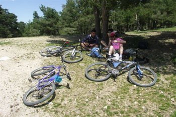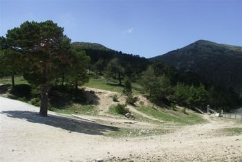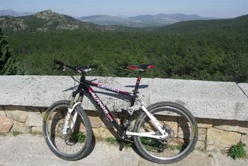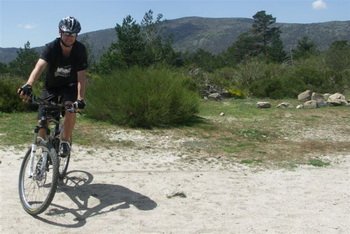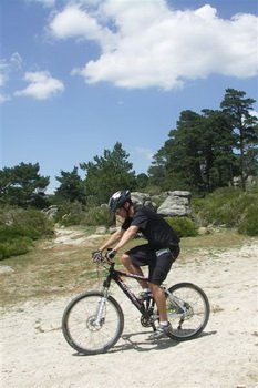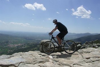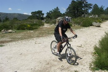 12 km w prawie 3 godziny. Trzeba było się sprężać. Rzut oka na mapę. Jest skrót! Nie ważne, że oznaczony jako trudny. Vamos! Na początku nie było źle, później zrobiło się ciężko, kiedy droga prowadziła po skalnych stopniach, z których każdy miał tak z przynajmniej 30 cm wysokości. W końcu zaczęły się dropy – odpuściłem. Sprowadziłem kawałek rower, bo nie chciałem ryzykować. Następna część, mimo, że trudna technicznie byłą już do zjechania. W końcu z lekkim bólem w nadgarstkach dotarłem do asfaltu. Szybki zjazd i już byłem w Cercedilli. W sumie 15 min. Niby krótko, ale za to jak fajnie;).