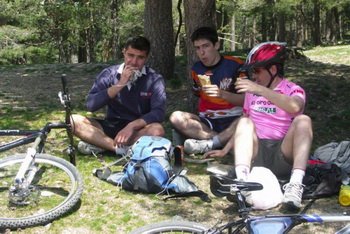 Nie wdając się w filozoficzne przemyślenia zapakowałem się w Renfe Cercanias, czyli madrycką kolej podmiejską i po półtorej godziny wyglądania za okno znalazłem się z Cercedilli. I od razu miłą niespodzianka. Spotkałem trzech innych rowerzystów, którzy zaproponowali mi przejażdżkę. Ponieważ do Escorialu daleko nie miałem, bez wahania ruszyłem z nimi. Okazało się, że jeden z nich jest księdzem, a dwóch pozostałych to jacyś jego podopieczni. O szczegóły nie pytałem, co mnie to w końcu obchodzi. Rzuciłem tylko hasło Juan Pablo II, Cracovia, Wadowice, papamobile i od razu stałem się ich ziomkiem.