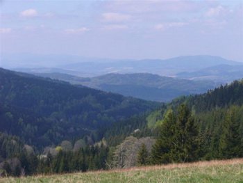 Po długim oczekiwaniu na weekend majowy nareszcie nadeszła godzina zero. Po gruntownym sprawdzeniu dzień wcześniej spakowanych bagaży udałem się na dworzec PKP, gdzie umówiłem się z moim kompanem Wojtkiem, który o godzinie 10ºº miał przyjechać pociągiem z Katowic. Po wymianie uprzejmości i uwag ruszyliśmy w podróż. Na początku jechało mi się całkiem dobrze, ale z biegiem czasu i pokonywanym dystansem mój entuzjazm słabł. Wiatr ciągle w twarz, jazda z przodu (Wojtek jechał za moimi plecami) i branie na siebie całego oporu powietrza, a przede wszystkim ogromnie ciężki bagaż jak na tak krótki wypad (wziąłem tylko najpotrzebniejsze rzeczy, więc jakim cudem całość bagażu ważyła 25 kg?), zrobiły swoje. Trasa była raczej nudnawa (Wojtkowi się podobała) – ciągła jazda góra-dół przez wioski i miasteczka, przez pola, łąki i laski. Po kilkudziesięciu kilometrach, na południu, po naszej lewej stronie, na horyzoncie pojawiły się góry, a mój stęskniony takiego widoku wzrok co chwilę podążał w tamtym kierunku. Teren stał się ciekawszy dopiero przed samym Złotym Stokiem, który miał być naszą pierwszą bazą noclegową – ciekawszy, ale i bardziej wymagający, o czym przekonaliśmy się pokonując dwa finałowe podjazdy przed miasteczkiem. Jednak po to wybraliśmy się w góry, aby poczuć smak potu spływającego po rozgrzanych policzkach podczas pokonywania kolejnych przełęczy i wiatr we włosach (obaj byliśmy obcięci na jeżyka-;P) podczas fantastycznych zjazdów. Złoty Stok był przedsmakiem tego, co miało się wydarzyć w kolejnych dniach, a ja wierzyłem, że duch gór wypełni moje serce.