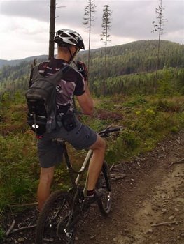 Czerwony szlak przez przełęcz Przysłop jest wielu dobrze znany. Po atrakcjach, jakie zafundowała nam Polica wydawał się dziecinnie prosty. Mimo to nie brakowało na nim technicznych odcinków. Najlepszy jest zdecydowanie jednak ostatni zjazd do Suchej. Jest stromy i szybki, a łąki, po których się jedzie kryją wiele niespodzianek, w postaci rowów, drutów i ledwo wystających z trawy ogrodzeń. Trzeba więc bardzo uważać, żeby nie zrobić sobie krzywdy.