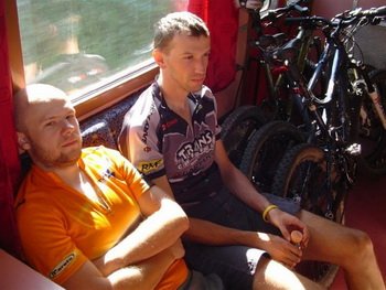 Zawsze powtarzam, że spontaniczne akcje są najlepsze. Tak było i tym razem. Wielki nie musiał mnie długo namawiać. Pasma Policy nie trzeba nikomu przecież reklamować. Tamtejsze szlaki to rowerowy gin z toniciem – jednym słowem klasyka. Bartek też się nie zastanawiał, czego wynikiem było spotkanie trzech w pełni zawieszonych jeźdźców w pociągu relacji Kraków – Zakopane. Nawalony jak Messerschmitt konduktor sprawdził nam bilety i zatoczył się do kolejnych przedziałów. Motorniczy chyba był bardziej trzeźwy, bo opóźnienie w Jordanowie mieliśmy tylko kilkominutowe. Tak naprawdę wysiedliśmy jednak stację wcześniej – w Bystrej, skąd czerwonym szlakiem rozpoczęliśmy nasza eskapadę.