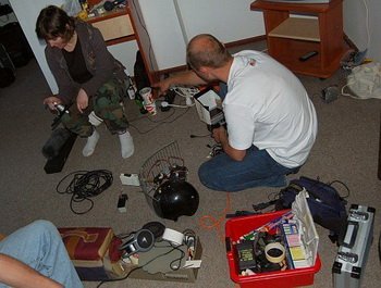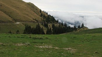 Zaczęło robić się coraz mniej przyjemnie. Nauczeni doświadczeniem mieliśmy zapas ubrań. Wystarczyło to by wjechać we względnym komforcie termicznym do schroniska Cabana Pietra Arsa (1950m n.p.m.). Tam spotkaliśmy się z resztą ekipy. Zagrzaliśmy się chwilę w samochodach i postanowiliśmy ruszyć w dół do Sinai. Pospieszyliśmy, bo na niebie (a właściwie to już na naszej wysokości) pojawiły się groźnie wyglądające chmury. Nasze obawy okazały się słuszne, a chmury brzemienne. Po zjechaniu kilku kilometrów zaczęło padać, walić gradem oraz błyskać piorunami. Szczęście w nieszczęściu, że na niezalesionej wysokości znalazło się akurat kilka drzewek, pod którymi znaleźliśmy może nie dobre, ale jednak schronienie (drzewa były iglaste, heh). Opady wyglądały na ciągłe. Wiedzieliśmy, że za nami zjeżdżała samochodami reszta ekipy. Poczekaliśmy i zabraliśmy się w dół z nimi. To był dobry ruch - deszcz wzmagał się. Gdybyśmy postanowili zaszaleć i zjechać w dół (1000m w pionie) w taką pogodę, wszystkie ciuchy byłyby przemoczone i nie zdążyłyby wyschnąć na następny dzień zdjęciowy, a sprzęt (klocki hamulcowe) mogłyby nieoczekiwanie się skończyć, abstrahując od tego ze strugi deszczu z góry i błotka z dołu skutecznie ograniczałyby widoczność, zalepiając nam okulary i oczy... tak skończył się pierwszy dzień filmowy.