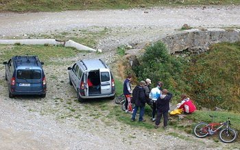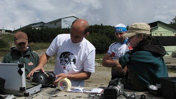 Na szczyt wybraliśmy się, rzecz jasna, rowerami. Filmowcy postanowili skorzystać z kolejki linowej. Problemem był rezerwat, który swym terytorium obejmował nasz plan filmowy, począwszy od Pietra Arsa w górę. Do tego miejsca była możliwość wwieźć sprzęt samochodami – dalej ciężki ekwipunek trzeba było wnieść na własnych plecach. To pogoda i brak czasu sprawiły, że za cel obraliśmy szczyt Costila, a nie tytularne Omu. Mimo wszystko byliśmy usatysfakcjonowani, gdyż jej wysokość wynosi praktycznie tyle samo (2490m n.p.m.) - zaledwie 17m mniej niż Omu.