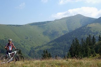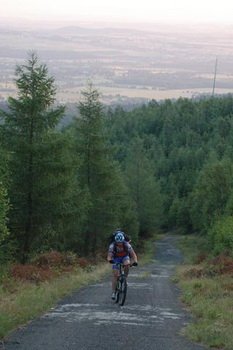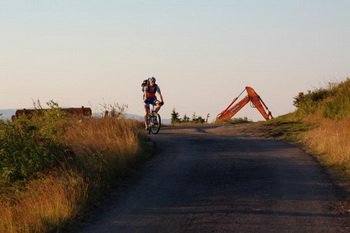 Podjazd Czarna Hora na Radehosta przypadł mi szczególnie do gustu. Mój rozklekotany napęd miał się coraz gorzej, więc Michał mi odjeżdżał- na jego szczęście-bo zauważyłem, że zgubił śpiwór...Podjazd zaczął się robić coraz bardziej dziki-sceneria przypominała las z Blair witch Project. Pot lał się litrami z nas, a bukłak wysychał. Podejście ciągnęło się i ciągnęło, a towarzystwa dotrzymywały nam roje krwiopijnych much. Szlismy dalej wyczekując szczytu łudziliśmy się za każdym drzewem że to już on, ale wiemy wszyscy czyją matką jest nadzieja... W końcu po wyrzuceniu z moich ust ton mięsa dotarliśmy- wszystkie nasze wysiłki zostały zrekompensowane zjazdem. Wtedy moja dusza wołała doGóry- Chwilo trwaj nie odchodź a 2 mówiła mi Postawcie tu wyciąg!