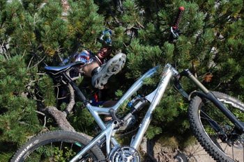 Zjazd ten naprawdę jest wspaniały wymaga opanowania, i maxymalnego skupienia, określenie tutaj jazda na krawędzi jest jak najbardziej trafna.... Dla ciekawości dodam ze mój Fox po tym zjeździe był równie gorący jak tarczówki:P. Z odrodzenia pokierowaliśmy się w stronę Słoneczników i tam chyba był najmniej przyjemny moment dnia strome niewyjeżdżalne wzniesienie w pełnym słońcu. Kiedy je pokonaliśmy znów mogliśmy jechać:).Każdy kto był tam chociaż raz wie jakie są tam kamienie i każdy z Was może sobie wyobrazić że po tym terenie z plecakiem nie jedzie się łatwo mimo iż oboje jechaliśmy na Fullach. Enduro:). Aby łatwiej nam się jechało spuściliśmy dość sporo powietrza z naszych opon co dało wspaniały efekt i miało konsekwencje w niedalekiej przyszłości...