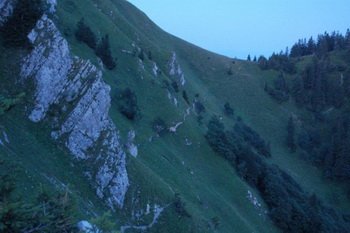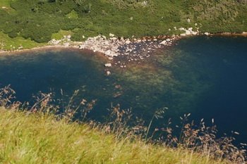 Napęd wymieniony uderzamy na Małego Krivana:D początek spoko.. jedziemy...krótko zaczynamy iść... idziemy ,jedziemy 30 metrów, idziemy... roweru nie da się pchać trzeba nieść, Robi się fajnie zastanawiamy się kiedy będą przydatne raki i liny, bo jest tak stromo...Żar prosto z nieba opieka nasze ciała niczym toster. Muchy zaczynają nas zjadać, w gardle sucho jak na Saharze, patrzymy na mapę prawie stoimy w miejscu do naszego celu kawał drogi...ale atakujemy...Dochodzimy do schroniska-widzimy źródło, ale okazuje się, że woda nie nadaje się do spożycia;/ od schroniska zaczyna się coś co nawet przez myśl by nam nie przeszło jeszcze w Beskidach. Połowa singla - ścieżynka 20 cm, wokół szalejąca dzika trawa daje nam do zrozumienia że cywilizacja jest daleko, jak się później okaże nadzwyczaj daleko...Fatry pozbawiają nas absolutnie wszystkiego poza zupełnie nieprzydatnymi tam pieniędzmi...Picia brakowało nam od schroniska, jedzenie skończyło się ok 19, nie zapomnę ostatniej konserwy... tego smaku i zapachu coś czuliśmy, że tego dnia nie dotrzemy do celu, że spać będziemy gdzieś na dziko. Zastanawiałem się gdzie-bo teren w jakim przebywaliśmy pozwalał tylko na podwieszenie namiotu na drzewach- nie było nawet gdzie usiąść było tak stromo:D. Rower zdecydowanie nie poprawiał naszej sytuacji. Momentami trzeba było wnosić rower i plecak na raty po pionowych skalnych ścian a mega gimnastyki wymagały od nas powalone drzewa leżące w wąwozach. We znaki dały nam buty... mieliśmy tylko rowerowe a chodzenie po takim terenie w takich butach to prawdziwy taniec na linie, zwłaszcza że robi się coraz ciemniej, końca trawersu nie widać, dochodzimy do wysepki gdzie było z 2mkw płaskiego:)i co dalej widzimy- ścianę szybkie pytanie, szybka decyzja:) napieramy. Kiedy ujrzeliśmy to co jest za ścianą to padlismyna kolana. Mała Fatra okazuje się Studnią Hard coru bez dna, w której dopiero zaczynamy spadać w jej niekończącą się otchłań. Słońce zaszło, jedyny widok to zalew mieniący się w pastelowych barwach i coś co trudno nazwać nawet ścieżka...w głowie przelatuje myśl: Ciemność widzę ciemność. Opisanie tej ścieżki zajęłoby wiele czasu, więc pominę jej opisywanie- było jeszcze fajniej niż po południu. A teraz jest ciemno, nogę za każdym krokiem stawiamy bardzo uważnie- nawierzchnia to sypkie kamyki wymieszane z ziemią, a wszytko to pod potwornie stromym kontem. Moje nogi obślizgiwały się kilkakrotnie, ale tym razem rower pomagał w utrzymaniu równowagi-podpierałem się na nim. Ale nie były to wszystkie przygody które spotkały nas na tym odcinku drogi- znów musieliśmy uporać się ze skałkami w głowie kłębi się od myśli co przydarzy się dalej kiedy będę mógł uzupełnić płyny, cukier, o śnie nawet nie myślałem w tym momencie- byłem zbytnio pochłonięty podziwem piękna i tych gór szkoda że po ciemku.