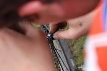 Daliśmy mocno czadu:) moje Hope'y zaczęły jechać zapachem hard coru - Efekt kapeć w przednim kole po dobiciu- po wallride przywaliłem w kamienia. Zaczęły się problemy...z nawigacja totalna klęska bo zabrakło nam jeszcze jadła...a mój napęd się już skończył definitywnie- działał na absurdalnie twardych biegach. W jednym miejscu byliśmy 3 razy...Szlag mnie trafiał do tego poszła ostatnia dętka, moje kolana zaczynały boleć robiło się zimno i zaczynało padać...Ale nie poddaliśmy się... mimo przeciwności losu dotarliśmy na Słowacje i o 22 byliśmy już w kwaterze. Niezapomniana Kolacja prysznic, jak byśmy czuli że jutro będzie CIEKAWIE:)