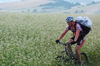 Cały dzień po płaskim znudził nas, ale też i dał odpocząć niektórym partiom mięśni. Tego dnia najważniejsze dla mnie było zobaczenie Odry gdzieś blisko źródła:)(rodowity Wrocławianin ze mnie). Przekroczyliśmy Bramę Opawską i naszym oczom ukazały się Beskidy- fenomenalny widok-ale nieporównywalnie mniej piękny do jazdy którą zafundowały nam później zafundowały:) Beskidy to góry które przynajmniej ja mało znałem, całkowicie inne od pierwszego podjazdu było wiadomo że nie będzie tak łatwo...Największym utrudnieniem był mój rozwalający się napęd, w którym nie chodziły biegi powyżej 28 t w kasecie. Zdajecie sobie chyba sprawę, jakie to utrudnienie - zwłaszcza w górach... Na szczęście wszystkie moje trudy zostały wynagrodzone zjazdami. Było wiele takich stromizn, że pchaliśmy obaj - nie było rady utrzymać ani toru jazdy ani kadencji.