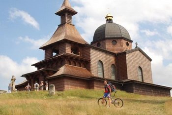 Dalszym celem tego dnia były góry Sowie. Ach ta Wielka Sowa...ten podjazd po kamieniach i te urwane zapadki w moich kołach. Zapadki udało nam się naprawić przy pomocy kamienia i papieru ściernego od łatek:)hulają do dziś:). Sowa ukazała nam się we mgle, więc nawet zdjęć nie robiliśmy, pognaliśmy w stronę przełęczy Woliborskiej. Zjazd po tej ziemi i kamieniach fantastyczny, ale dopiero później mieliśmy zjazd dnia. Gdzieś pobłądziliśmy ostro i tam w drogach zrobionych przez LKT nasze rowery grzęzły dość głęboko, kulminacja była, gdy na zjeździe Michała wystopowało na kilku metrach... ja jechałem za nim i wpadłem w bajoro tak, że osiek nie było widać:). Kolejną wartą przygodą do opisania jest podjazd z Barda na Kalwarię. To była tego dnia prawdziwa droga Krzyżowa dla nas także - śliski najeżony kamieniami stromy podjazd, powoli kończące zapasy wody... późna godzina i świadomość tego że wiemy co nas czeka dalej- znaliśmy już tą drogę. Na Kalwarii byliśmy ok.18:00, a potem pojechaliśmy do kochanego rodzinnego domku letniskowego we wsi Wojtówka koło Lądka. Gdy zajechaliśmy było ciemno jak w …