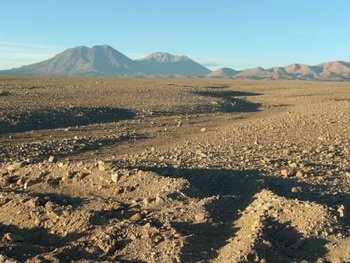 Po kilku godzinach obudziłem się - skutek rewelacyjny, głowa nie boli, praktycznie wyspany zacząłem obserwować termometr. Nie wiedzieć czemu przy -8 w środku i –17 na zewnątrz zaprzestał działania. Po ogrzaniu baterii zaczął działać:). Musze zauważyć, że mój śpiwór jest do -17 otoczenia, więc naprawdę było mi ciepło! Być może to było jakieś załamanie pogody. Z rana zero wiatru, ale ruszyłem dopiero, gdy było około 0 stopni. Wiatr pojawił się dopiero około południa i przez dłuższy czas współpracował idealnie. Dopiero przed samym Ollague wiało z boku. W Ollague sporo zmian, znajomy kierownik już nie pracuje w hotelu, ale nadal miał spore chody:) Flaszkę przyjął bez problemu:), chyba po dzienniku przybiegł powiedzieć, że następnego będzie mocno i zimno wiało. Ustaliłem, że maniana maniana to nie maniana i że następnego dnia będę się aklimatyzował lokalnie. Dopiero kolejnego dnia miałem ruszyć na podbój Aucanquilchy. I ważna rzecz. W hotelu spotkałem dwóch Francuzów, z którymi pogadaliśmy przy kolacji. W wyniku czego ja się wzbogaciłem o 3 liofilizaty, a oni o xero z przewodnika o Calamie i dokladny plan zajęć w San Pedro. Od czterech tygodni jeździli po Chile i Boliwii. Od dziś postanowili nie poruszać się już na rowerach, nie pytałem, ale wyglądało, że zaplanowali niedoprowadzanie się do stanu trzeźwości przez ostatnich kilka dni do wylotu. Skąd ja to znam:)