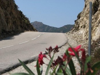 Następnego dnia mieliśmy do pokonania 96km do Porto. Na trasie napotkaliśmy 2 podjazdy na +400m n.p.m. Na pierwszym, 4-ro kilometrowym, myślałem, że wyzionę ducha, lecz duch postanowił zostać ujrzawszy zjazd i scenerie. Wtedy też dowiedziałem się, dlaczego Korsyka nazywana jest 'L'Ile de Beaute', a to był dopiero 2 dzień naszego tourne. Ponadto 10km ciągłego zjazdu w głąb doliny zrekompensował wszelkie trudy podjazdu. Następny podjazd był już znacznie łagodniejszy (rozłożony na około 11km), a słońce też jakoś słabiej świeciło. Na przełęczy, która okazała się tamtejszą granicą województw, po raz kolejny uzupełniliśmy bidony (Michał jesteś wielki!). Następnie mieliśmy do czynienia z prawdziwą nirwaną! Przez resztę dnia prawie cały czas zjeżdżaliśmy po krętych drogach położonych nad morzem ... aż brak słów, które mogłyby to opisać! Niestety tego dnia ja i Grzesiek mieliśmy dyżur w „kuchni”, więc też szkoda gadać =)