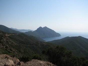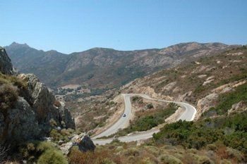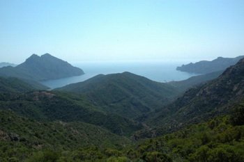 Wypoczęci, schłodzeni i nie zmieszani kontynuowaliśmy naszą wyprawę. Na trasie czekał już na nas z wytęsknieniem jeszcze jeden podjazd na 430m (przełęcz tuż za Tiuccią). Nawet na GoogleEarth widać jaki to zakręcony wjazd! =) Jednakowoż opłacało się. W zamian otrzymaliśmy możliwość podziwiania przepięknego widoku z pizzerii na samej przełęczy oraz pokonania kolejnego dluuuugieg zjazdu ciągnącego się praktycznie do samego Ajaccio. Przejazd obwodnicą i dojazd do Portoccio należał do tych odcinków, które po prostu trzeba było przejechać … ruch jak w zwykłym mieście, a atrakcji brak. W sumie tego dnia zrobiliśmy około 100km.