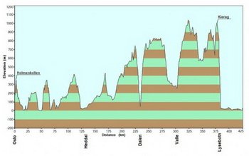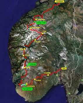 Lądujemy w Oslo 10 czerwca przed południem. Autobusem docieramy do centrum gdzie montujemy rowery i ruszamy w miasto. Odwiedzamy Zamek Królewski Slot, Park Vigelanda, Radhuset i półwysep Bygdoy. Wieczorem instalujemy się na kempingu niedaleko skoczni Hollmenkolen, którą zwiedzamy następnego dnia. Opuszczamy miasto i drogą E134 kierujemy się na zachód. Jak na razie jest cały czas lekko pod górkę, ale znośnie. Słońce daje się nam we znaki i jest naprawdę gorąco. Chłodzimy się oczywiście w spotykanych po drodze jeziorach. Jedzie się rewelacyjnie. Aż do momentu, gdy stromym zjazdem z ok. 800 na 200m docieramy do Dalen.