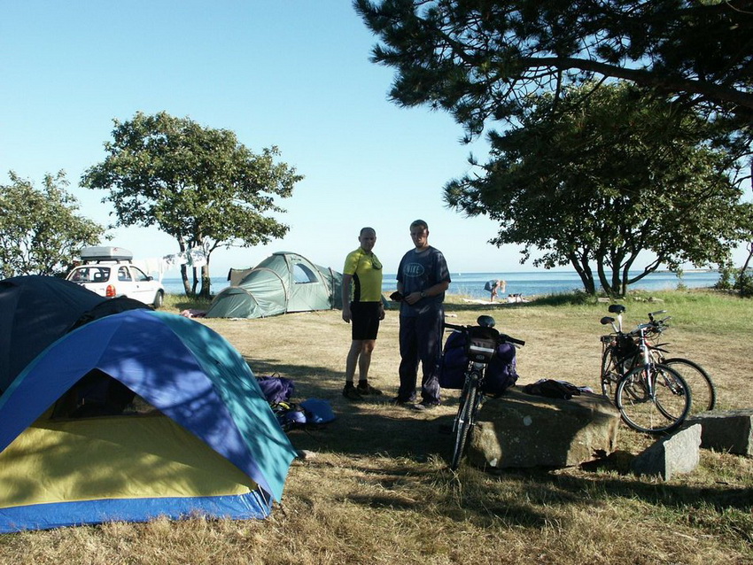Spośród wielu opcji noclegowych (tanie pola namiotowe – bez ciepłej wody, bez pryszniców; campingi; domki; pensjonaty) wybraliśmy ofertę satysfakcjonującą nas zarówno pod względem finansowym, jak i komfortowym tzn. nie za drogo, ale wygodnie – pod własnymi namiotami, na campingu (około 30-50 zł/24 h na osobę) z prysznicami (z odpłatną ciepłą wodą – 1 DKK = 1 min), sklepem, dostępem do kuchni. Zmęczeni podróżą, po polowej kolacji oraz orzeźwiającej kąpieli w zimnym Bałtyku, poszliśmy spać.