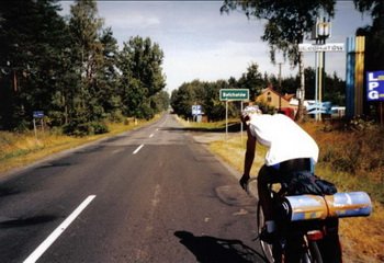 Zaczęło się od pewnej kobiety, która z wielkiej łaski nam pozwoliła... Lecz nie skorzystaliśmy, nikomu nie chcieliśmy sprawiać kłopotu :] Kolejna kobieta wymijająco powiedziała nam że możemy zapytać strażaków czy koło remizy można się rozbić... Podjechaliśmy pod remizę. Usłyszeliśmy od strażaków że "nie ma szefa i nic nie mogą nam powiedzieć w tej chwili, czy można lub też nie" W międzyczasie przyjechał "szef" (zajechał żółtym maluchem :-D), tez nie był zbyt chętny by nam pomóc. Pojechaliśmy do sklepu po jedzenie na kolacje i śniadanie, tam też dowiedzieliśmy się że jest możliwość noclegu obok Miejskiego Ośrodka Zdrowia. Podjechaliśmy tam, nikogo nie było w pobliżu. Łukasz przypilnował rowery, ja wszedłem na górę, zapukałem ... Otworzyła kobieta – pielęgniarka. Okazało się, że nie ma żadnych przeszkód w tym byśmy się rozbili. Nareszcie! :) Rowery schowaliśmy w pobliskiej kotłowni. Trochę się o nie obawialiśmy bo bez większych problemów można było je stamtąd buchnąć :-/ Lecz nie znalazł się chętny :-) Wieczorem przysiadł się do nas pewien Jacek, który mieszkał w tym ośrodku. Starszy od nas o kilka lat. Oczywiście tematem rozmów stały się rowery, nasza wycieczka itp. :-) Poszliśmy spać ok. 00:30 w nocy. 3 Dzień (Piątek, 13 VIII 2004) Niestety pechowy ... :-/ Standardowo wstaliśmy ok. 04:00 złożyliśmy namiot spakowaliśmy się i w drogę Jak się później okazało mieszkaliśmy jakiś kilometr od obozu zagłady gdzie spalono 360.000 osób. Przejeżdżaliśmy tam ok 05:00 rano... całkiem konkretny klimacik tam zastaliśmy... W środku lasu "ciekawe pomniki"... lekka zgroza :-) Pozwiedzaliśmy część tego lasu i obóz.