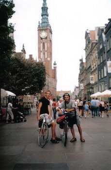 To była iskierka nadziei :-) W końcu wstał i otworzy nam bagażnik i próbowaliśmy włożyć, odkręciłem przednie koło, ledwo się zmieściły :-) Zamykając bagażnik poczułem, że już jesteśmy w Gdańsku. To była optymistyczna perspektywa :-) Po ok. 1,5 godziny dotarliśmy do Gdańska na dworzec główny. Jakoś odnaleźliśmy Patrycję. Kupiliśmy bilety, sprawdziliśmy godzinę odjazdu, peron itp. po czym udaliśmy się na gdańską starówkę. Nie wiem jak innym podoba się, ale jak dla mnie jest piękna, w szczególności nocą. :-) Cały dzień spędziliśmy na starówce szwendając się po różnych straganach. :-) W międzyczasie zjedliśmy coś... Zostawiliśmy rowery z bagażami na "Rowerowym Parkingu Strzeżonym" utworzonym na czas Jarmarku św. Dominika, który odbywał się w tym czasie. Była scena, występy, zabawy itp. :-) Spędziliśmy tam sporo czasu... Później pojechaliśmy autobusem komunikacji miejskiej na Plac Westerplatte, to był chyba nawet nr 106 :D Pozwiedzaliśmy tamtejsze okolice. Chwilkę posiedzieliśmy na brzegu morza i koło 20:00 wróciliśmy z powrotem na Starówkę, gdzie czekały na nas rowery :-) Pospacerowaliśmy jeszcze do około godz. 22:00. Później poszliśmy po rowery i na stacje PKP, skąd o 22:56 odjeżdżał nasz pociąg. Chcieliśmy się wbić do wagonu dla inwalidów, :-) bo taki miał być ciągnięty, przez ten pociąg, a wszystko przez to, że nigdzie indziej nie moglibyśmy po ludzku jechać te 10 godzin do Krakowa. Inaczej musielibyśmy się zmieniać przy rowerach na korytarzu. Na nasze szczęście udało nam się dostać do tego wagonu, co prawda drzwi się nie chciały otworzyć no ale nas już nic nie zdziwi w polskim transporcie państwowym :] Okazało się że w tym wagonie jest mnóstwo miejsca, ponieważ nie ma siedzeń itp. gratów. Kilka poręczy i pusta podłoga :-) Wtaszczyliśmy tam rowery i rozłożyliśmy karimaty. Słodko spaliśmy przez prawie całą podróż... :-) 10 Dzień (Piątek, 19 VIII 2004) Po przyjeździe do Krakowa, mieliśmy 15 min. później kolejny pośpiech do Dębicy. Sam nim pojechałem, ponieważ Łukasz z Patrycją postanowili jeszcze zostać w Kraku i wrócić następnym pociągiem ok. 11:00. Ja o tej porze leżałem już w wannie u siebie w domu :-D :-D Cóż to była za przyjemność ... :-D Później wpadł do mnie Łukasz, pogadaliśmy i tak zakończyła się nasza, w sumie bardzo udana wyprawa... :-) Dystans dzienny: Dzień 1: 203,28 km Dzień 2: 218,13 km Dzień 3: 205,48 km Dzień 4: 209,38 km Dzień 5: 196,13 km Dzień 6: 42,15 km Dzień 7: 33,05 km Dzień 8: 44,23 km Dzień 9: 25,14 km Ogółem: 1176.97 km ze średnią prędkością 22,71 km/h w czasie 51 godzin 25 minut i 24 sekund :-) Artykuł został nagrodzony w Konkursie Turystycznym Bikeworld.pl