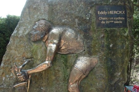 Pomnik Eddy Merckx'a na Cote de Stockeu. Belg wygrywał LBL pięciokrotnie i jest samotnym rekordzistą pod tym względem
